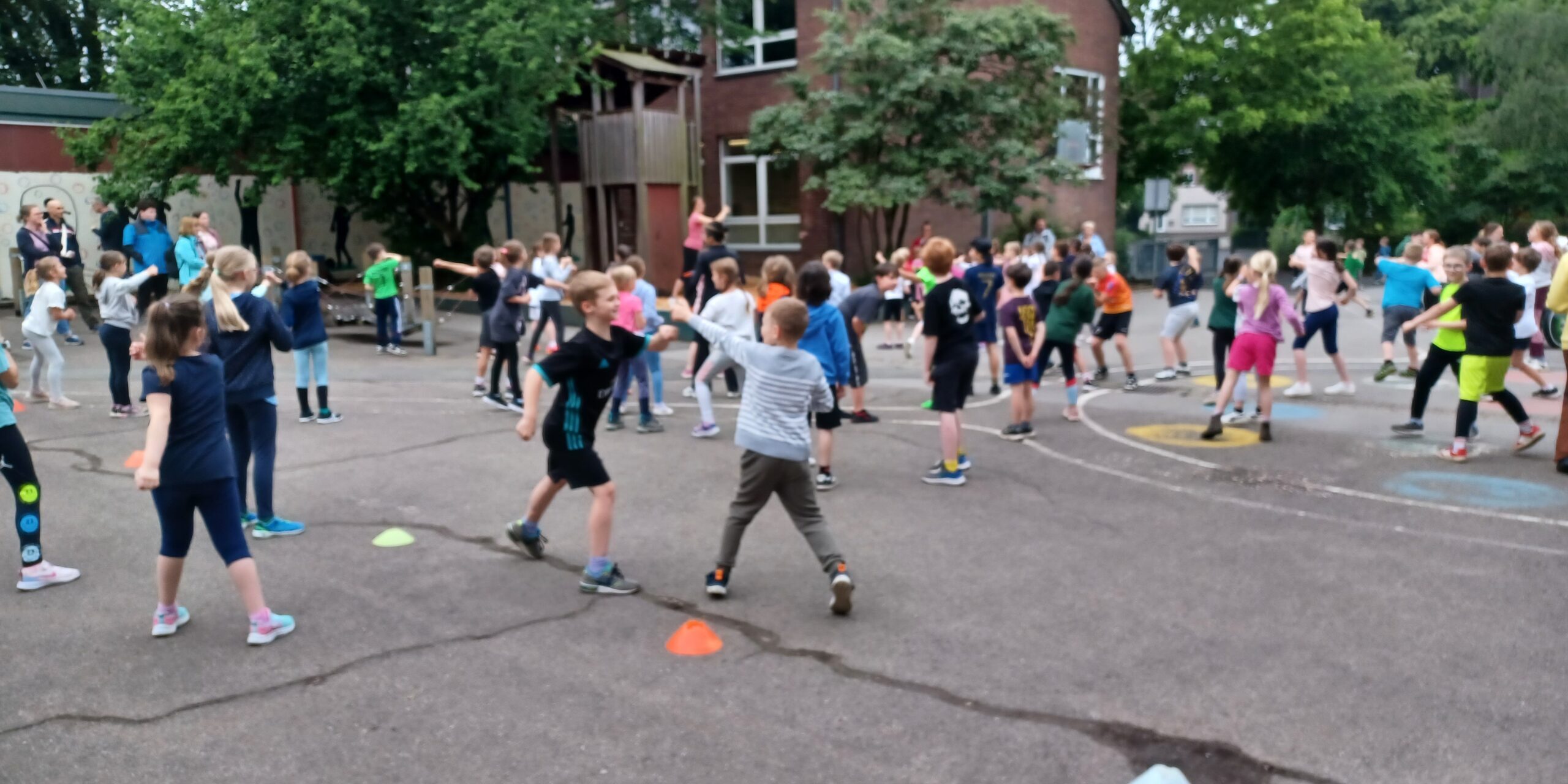 In diesem Jahr konnten wir, dank tatkräftiger Unterstützung vieler Eltern, ein tolles Sportfest an unserer Schule stattfinden lassen. Auf allen freien Flächen, rund ums Schulgebäude, wurde geworfen, gerannt und gesprungen. Und hatten Kinder einmal keine Aufgabe, gab es viele schöne Spielstationen auf dem Schulhof.