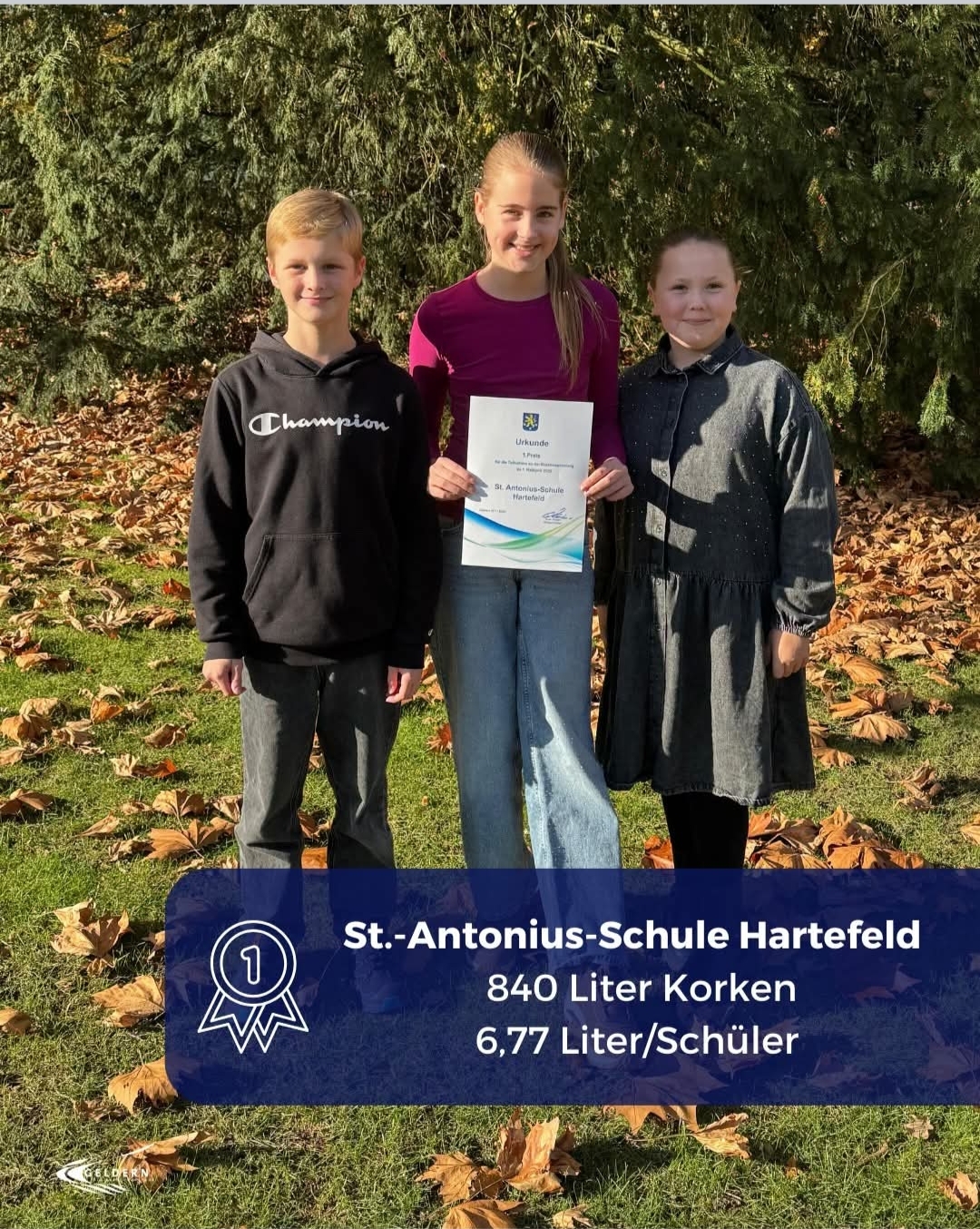Bei der diesjährigen Korksammelaktion der Stadt Geldern Dank haben wir, dank tatkräftiger Unterstützung beim Sammeln, wieder den 1. Platz erzielt. Kinder der 4 Klasse haben den Preis stellvertretend für uns alle entgegengenommen.
